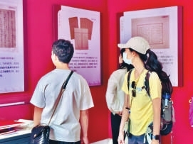 参观完庄严肃穆的大政殿,考生们意犹未尽,目光很快被一旁热闹非凡的文创市集吸引。市集里,各类以“好运”“祈福”“鱼跃龙门”“一举高中”为主题的文创产品琳琅满目,瞬间点亮了考生们的眼睛。大家如同寻宝一般,纷纷驻足在货柜前,仔细挑选着心仪的物件。有绣着五种吉祥祝福的学业香囊,有刻画着金红锦鲤的“鱼跃龙门”冰箱贴……沈阳故宫文创部工作人员向记者介绍道:“这些文创以各类文化元素及吉祥纹饰为灵感,叠加蟾宫折桂、一路连科、金榜题名等‘好运buff’,就是希望祝福每一位考生,一鸣从此始,相望青云端!”